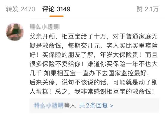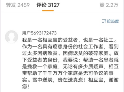 这消息很快被顶上热搜,业内人士评价:利空出尽,蚂蚁终于能重新出发了。蚂蚁集团也很快做出了回应,表示自己诚恳接受、坚决服从,并且已经完成相关整改事项。不过,比起蚂蚁完成整改,监管公告里提到的已经关停的相互宝,更引起了我的注意。这个被点名的“相互宝”,对我们来说,既熟悉又陌生。说熟悉,是因为它曾有超1亿人加入,在当时是全球最大的互助保障平台。而陌生,则是因为早在去年1月28日,相互宝就已经关停落幕,我们已经很久没有了它的消息。翻开社交媒体评论区,对相互宝的怀念和感谢,从来没有间断过。但也有人在网上诋毁,说相互宝是骗局,甚至说要让相互宝退钱。但我想说的是,没出险让退钱,全天下都没有这样的道理。对于相互宝这样一个曾经给予我们保障或帮助的东西,没有必要去全然否定它,在它“死去”以后,更没必要去狠狠地踩上一脚。电影《芳华》中有一句台词:只有善良的人才最能识别善良,也最能珍惜善良。只有曾经使用过并得到相互宝帮助的人,才能明白它的善良和难能可贵。根据相互宝社区的公示信息显示,从成立到关停的这段时间,1亿多成员互帮互助,在自身获得保障的同时,累计救助了205337名患病成员。但如果你打开相互宝的爱心足迹,或是各大网络平台的评论区,你才能真正意识到,这二十多万人,很可能就是我们身边的任何一个普通的丈夫、妻子、孩子、老人。那个在疫情期间主动参与到抗疫一线的护士冰冰,抗疫工作结束不久,便被确诊为非霍奇金淋巴瘤。确诊后,她曾一度陷入了至暗时刻,“觉得自己没有用了,是一个废人,是家庭和社会的拖累。”而将她从万念俱灰的黑暗中拉扯出来的,正是来自相互宝上众多陌生人的善意。30万元互助金的到账,给了她莫大的勇气去重新面对生活。如今,她已经重新穿回了护士服,虽然平时还需要戴着假发,但又可以继续奋战在救死扶伤的第一线。还有网友为了声援相互宝,特地注册了微博账户,告诉大家相互宝没有骗人,自己就是曾经的受助人。他说,无论相互宝有多少争议,它曾经实实在在帮助了千千万万个家庭,这是不争的事实。还有患上肠癌的前海军战士,这个曾为祖国戍守边疆的汉子,在相互宝成员的帮助下击败了病魔,得以重新开始守护他的小家。那个刚刚一岁就患上严重甲型及乙型血友病的孩子,也在一亿人的善意簇拥下,有了机会去更好地感受这个世界。还有新闻评论区里,那一个个收到赔付的人们声援相互宝的真实声音,他们看似云淡风轻的文字之下,都是真诚的感谢。在相互宝的爱心足迹里,每一条动态下面,你都能看见成员之间最诚心的祝福,和最真挚的鼓励。他们参与互助的理由或许各不相同,也或许很“幸运”地没有用上那笔赔付金,但在相互宝关停之后,他们却不约而同地选择了继续释放着自己的善意和温暖。他们说:“能帮助需要帮助的人一点也没觉得亏,巴不得一辈子用不上。”在不知不觉中帮助了那么多人,相互宝或许就是“善意聚沙成塔”的最好诠释。很多时候,我们走在人生的崎岖小径上,走着走着,就会不小心摔跤,遍体伤痕,染上一身尘灰。这个时候,来自陌生人的善举,对那个时刻里的我们来说,就是最弥足珍贵的东西。虽然相互宝关了,但不可否认,它曾最大程度地激发了人性的善意和信任,时至今日。在我的成长过程里,曾亲眼目睹过乡下和落后城市中,那些相对贫穷的家庭在面对大病时的无力和辛酸。也正因为如此,我对相互宝,虽然称不上举全家之力去支持,但觉得它至少是一次值得尊重的尝试。南开大学卫生经济与医疗保障研究中心,曾对4.2万名相互宝成员进行了调查,发布了《相互宝社会价值研究报告》。报告发现,受访的相互宝成员中,10%的人除了相互宝外没有其他任何保障。30%的受访者年收入低于5万元,37%的受访者年收入在5-10万元之间。还有数据显示,相互宝的所有成员中,约6成来自三线及以下区域,来自农村和县城的成员占到了三分之一,他们之中还有一部分人群没有基础的医疗保障。这些人,或许大家不曾留意过,可他们的泪水与艰难,却不会因为没被关注到而消失。而相互宝的出现,让这部分大病弱势人群,多了一份厚实的保障。它让来自天南海北的陌生人们聚集在一起,促成了跨越整个中国土地的守望相助。这样的守望相助,分摊到每个参与者身上来看,或许不过就是几两碎银,很微小,甚至不值一提。但对于那些处在困境中、“差一步”的人们来说,那无数个“几两碎银”汇聚成的,就是一只能够解开万般窘迫,甚至能赶走病魔的温暖之手。就凭这一点,就凭那些确确实实得到帮助的人,相互宝陪伴和温暖我们的那一段岁月,就值得我们的掌声。相互宝虽然已经落幕,但人与人之间质朴的善意始终存在,一定会生生不息。PS. 碎片化时代,更文不易,欢迎在文章结尾给我们点一个【赞】+【在看】,你的支持就是我们前行的动力!看更多走心好文章