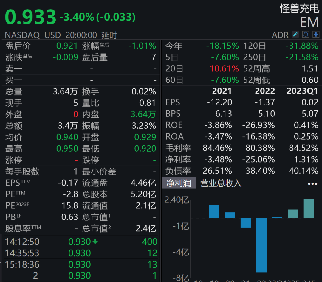 图:共享充电宝行业“龙头”怪兽充电连年亏损,今年以来美股股价下跌近20%