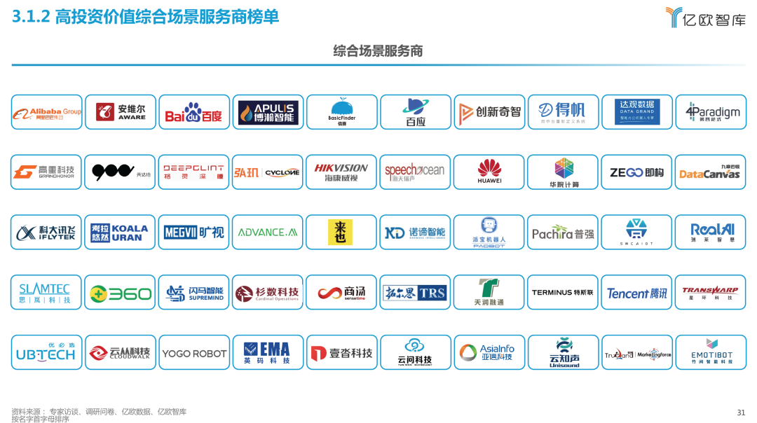 以场景评价为基础,结合基于营收、业务增速、高价值场景覆盖数、场景落地能力等指标,评选出《高投资价值综合场景服务商榜单》和《高投资价值垂直场景服务商榜单》。