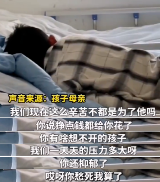 “我们现在这么辛苦不都是为了他吗?你说挣点钱都给你花了?你有啥想不开的?我们一天天的压力多大呀!你还抑郁了,你愁死我算了!”
