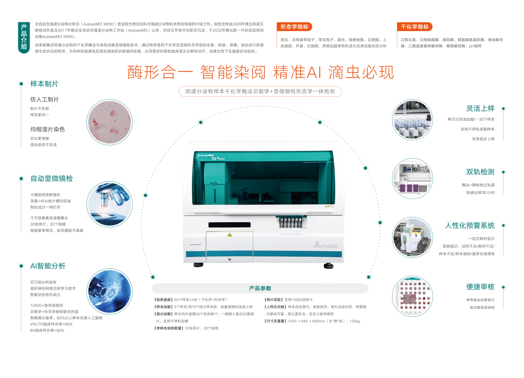 AutowoMo W500系列采用干化学酶法+形态学一体化检测,两者联合AI判读,提升临床符合率。