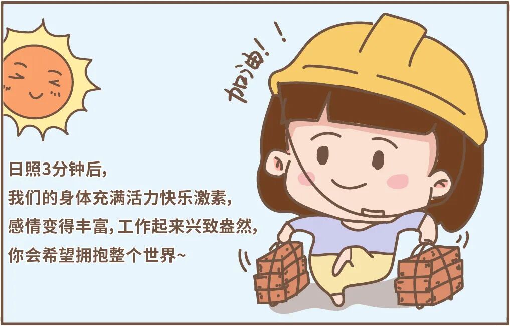这个时间阳光里的紫外线A比例很高,晒会儿太阳补钙又不易发黑。