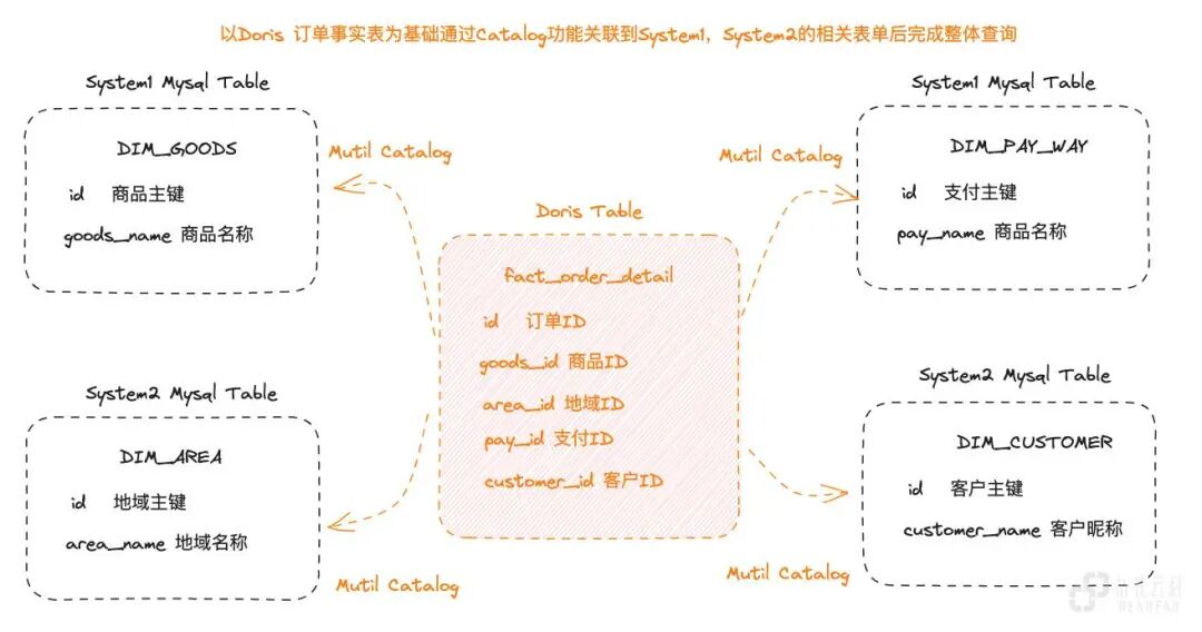 由于上游数据源较多,我们仅对常用的数据表单进行了数据仓库采集建模,以便更好地进行管理和使用。对于不常用到的数据表单,我们没有进行入仓,但业务方有时会临时提出未入仓数据的统计需求,针对这种情况,我们可以通过 Doris 的 Multi-Catalog 进行快速响应、完成数据分析 ,待需求常态化后再转换成采集建模的处理方式。