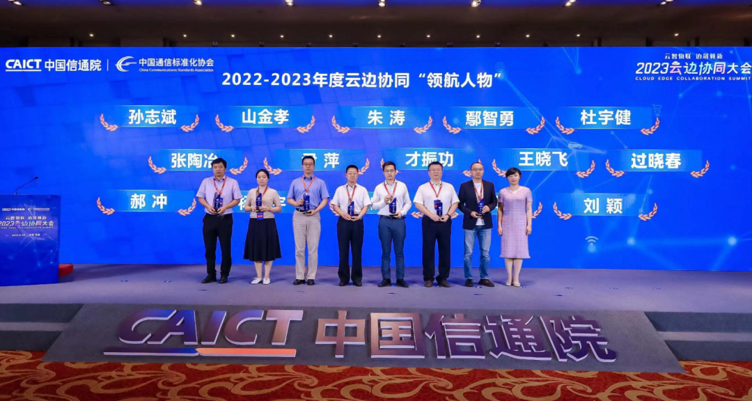 会上公布了 2022-2023 年度云边协同“领航人物”,招商局集团有限公司数字化中心技术管理处处长山金孝、中国铁路信息科技集团有限公司总信息师朱涛、中国农业银行总行研发中心应用开发三部总经理孙志斌、移动云能力中心创新中心副总经理杜宇健、阿里云智能边缘云业务总经理郝冲、浪潮云产品总监尹萍、杭州谐云科技副总裁才振功等获此殊荣。