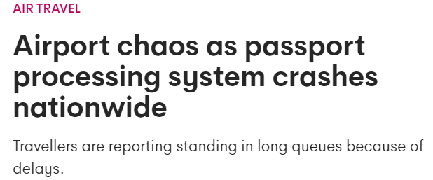 澳洲边防局(ABF)的一位发言人证实,管理“Advanced Passenger Processing系统(旅客预审系统,APP)”的服务提供商出现了IT故障,该系统用于在旅客登机前与航空公司确认该乘客拥有离境权限及合法的证件。
