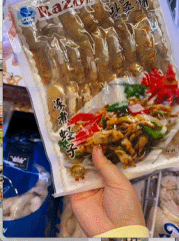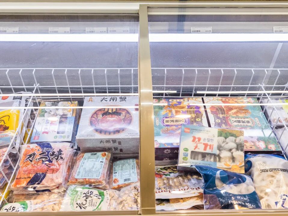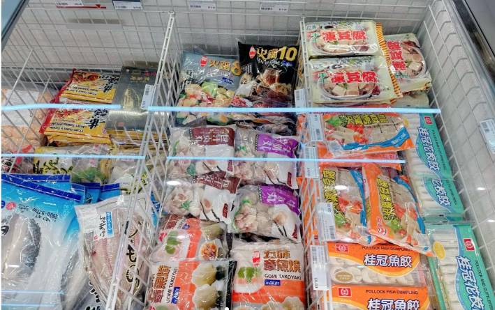 超市里还有冰冻海鲜等“硬菜”提供,