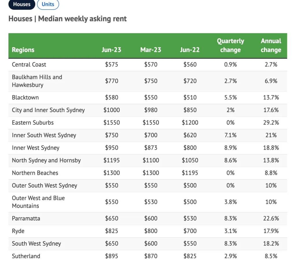 内西南地区的公寓租金年涨幅为36.4%,Parramatta、市区以及内南区增长33.3%,内西区上涨30.8%。东区房屋租金上涨了29.2%,即每周350澳元。尽管价格在季度内稳定,但Powell表示,这可能表明了可负担性的限制。