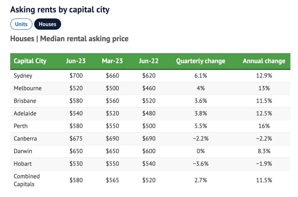 这是自2004年Domain有记录以来的最大跃升,也是单元房租金连续上涨的最长周期——现在已经连续八个季度。此外,房屋租金也创下新高,本季度上涨6.1%,要价中位数达到700澳元,同比上涨12.9%。