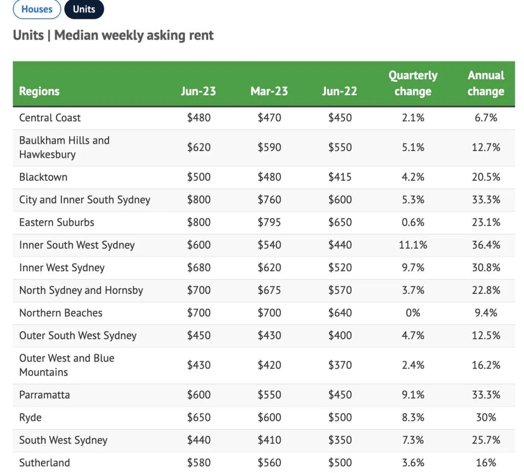 过去一年,悉尼的单元房租金每周飙升了145澳元,这给已经被其他成本上涨压得喘不过气来的家庭预算带来了压力。