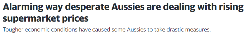 Yahoo新闻7月4日报道称,随着生活成本危机的加剧,苦苦挣扎的澳洲人持续感受到压力。然而,一些人为了应对物价上涨和经济压力竟采取了极端措施。