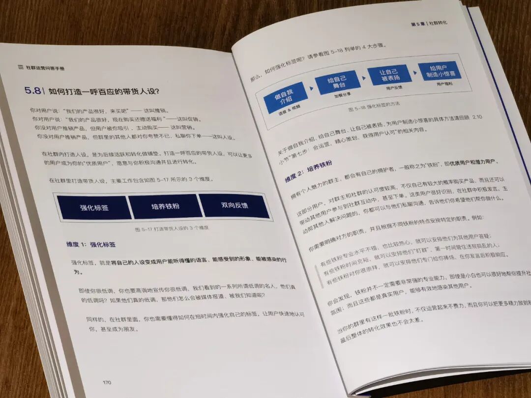 类似这样的问题,《社群运营问答手册》里总共有58个,每一个都是社群运营的关键重点与难点。可以说解决掉其中的任意一个问题,都能帮助你把社群这件事做得更好。我们针对每一个问题都采用“方法论+案例”结合的方式进行详尽回答,内容颗粒度细,可复用性强。比如,在回答「如何策划高参与度的社群活动?」问题时,我们先给出了背后的原因和方法:在帮助你掌握解决问题能力的同时,在下一个问题的回答中还给出了可以参考的和复用的案例,降低你的学习门槛以及应用成本。比如,在回答「群主打造人设的关键步骤是什么?」问题时,我们不仅给出了打造人设的原因,还给出了打造人设的 7 个步骤:并且,针对不同步骤给出了具体的案例讲解,降低你的理解成本,加强实操性。
