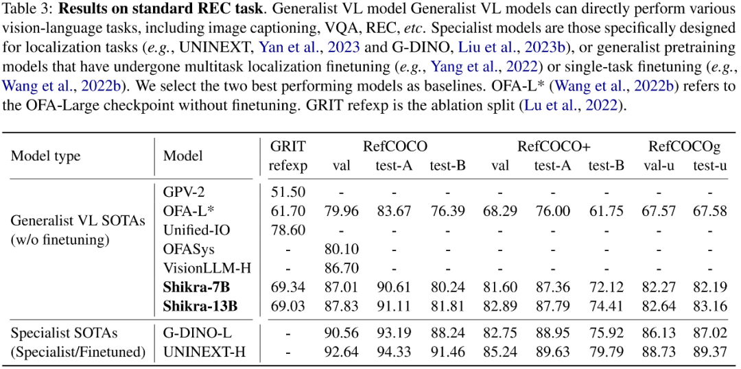 如上图所示,Shikra能够精确理解用户输入的定位区域,并能在输出中引用与输入时不同的区域进行交流。像人类一样通过对话和定位进行高效交流。![]()