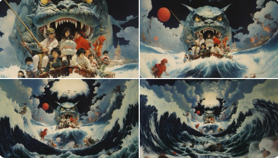 类似于 Adobe 的生成填充工具,缩放功能允许用户自动扩展原始图像,将其范围扩大到更广泛的比例,同时保持原始图像的细节不变。通过“/image”命令输入提示后,Midjourney 会基于用户输入,在网格中输出四个视觉迭代版本。然后他们可以“升级”他们最喜欢的特定图像,并以更高精度呈现它。