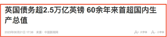 作者简介:原外交系统的海军老兵,现中国500强企业社畜。 非常缺钱的时候,各种问题就全冒出来了,喝凉水都塞牙缝。6月21日中新网报道,英国债务超过了GDP总量,高达100.1%,上一次达到这个水平的时候,还是60多年前的事情,但那会儿的家底比现在厚实多了。 英国经济学家曾经说:2023年,英国将面临七国集团中最严重的衰退和最微弱的复苏。他要知道这话正在变成现实,打死他都不会说了。借债这玩意容易上瘾,因为议员首相谁也不用挑担子,借再多也无所谓,大不了发表一通激情高昂的演讲,活跃一下气氛。反正英国政府没钱了,横竖都是借债,就看谁忽悠的本领更专业,毕竟打一战、二战就是靠债券顶起来的,借债这方面,也算英国人的优良传统。5月底,英国的食品通胀率达到了19.1%,是工业化国家中最高的。但英国的政客根本没人在乎老百姓日子好不好过,连个改善食品物价的提案都没有,那个印度裔首相也是满世界飞,天天尽忙着关心泽连斯基,忙着在南海台海放狠话,到处作秀。从2019年以来,英国的食品成本上涨了25%,甚至曝出有军方人员和家属跑去食品银行接济。饭都吃不饱,各种不满情绪就爆发了,苏格兰早就不想给英联邦交税,再加上选了个巴基斯坦裔话事人,跟那个印度裔的苏纳克完全尿不到一个壶里,都想尿对方裤腿上。今年以来,英国各地的游行抗议活动越搞越大,街溜子也多了,跟美国的零元购比起来,英国街头的打砸抢也不是什么新鲜事。好歹也是老牌帝国,家里曾经阔过,两次世界大战把自己打残废以后,跟着美国到处欺负人,多少也能吃点肉渣,但总归没以前那个实力了,跟祖上比起来,生意越做越抓瞎,生活越过越倒退!世界银行公布的数据显示,英国的GDP总量在2007年以前有一波大增长,但2008年以后就停摆了,在震荡中吃老本。2008年的金融危机、2010年的欧债危机全赶上了,被美国收割了一波又一波,美国死活不给英国人签自贸协定。英国加入欧盟本来是进来薅羊毛,发现薅羊毛也是有成本的,当欧债危机爆发以后,欧盟要凑份子救成员国,英国不干了,死活不愿出这钱,就耍赖闹脾气。到了2016年,英国琢磨着想吃席,又不想随份子,轰轰烈烈搞脱欧,结果丢掉了欧洲这个大市场,日子更加难过。脱欧以后,发现没了关税优惠政策,英国货在欧洲大陆卖不动,从欧洲倒腾进来的货反而多了,逆差降不下来,通胀也打不下来。据说当初梗着脖子坚定脱欧的一些英国人又后悔了,开始怀念他们在欧盟的好日子。英国人不高兴,欧盟也不高兴啊,本来英国入伙以后就是拿欧盟当工具人,有蛋糕吃得比谁都快,有困难溜得比谁都早。比如,欧债危机爆发后,英国表面上参加了欧盟的危机救助方案,别说提供财政援助,一毛钱援助都没有,只给国际货币基金组织提供了110亿欧元的贷款就拍拍屁股走了,压根儿就没怎么出过力。脱欧以后,美国还给英国吃了一颗定心丸,说欧陆自古多虫豸,谁跟虫豸搞政治?能脱还不赶紧脱,脱完有我来支持,自贸协定咱俩签,力气一块使。然后,换了四五个首相,自贸协定还在半空中悬着。没了欧盟这颗大树的庇荫,英国的经济马上出现各种困难,开始靠发债过日子。伦敦是英国的金融中心,金融业也是英国的产业支柱,脱欧对这个行业打击很大。英镑贬值得相当厉害,超过了10%,本来10块钱就能买的东西,现在得花11块,甚至更多。再一个就是人才流动受影响很大,在英国工作的欧盟人才一下就跑了20万。设在伦敦的那些欧洲金融总部、公司总部、集团总部,也都搬回了欧洲大陆,拍屁股走人的时候,当然也带走了资金。前面说了,英国在贸易上占了欧盟的便宜,本来都是零关税的产业和领域,现在得交关税,好多英国企业就不往欧盟卖东西了,主要是卖不动,英国也没啥不可替代的商品。英国税务海关总署披露数据,2021年,往欧盟出口商品的英国企业数量已经从之前的27321家减少到18357家,少了近9000家,对欧盟的商品出口总额比脱欧前的2018年少了200亿英镑,9000家企业。200亿英镑已经不少了,要是把产业链上下游都算上,能撬动的资金成倍翻,创造的就业岗位也是相当可观的!现在倒好,居然有一些英国人说吃不饱饭,社会开始出现动荡了。在英国的历史上,苏格兰一直跟英格兰就不对付,以前就打得很凶,英格兰死活征服不了苏格兰人的心。电影《勇敢的心》就是讲苏格兰反抗英国统治的故事,那个贼能打的主角儿叫威廉·华莱士,是苏格兰独立战争中的标志性人物,真实存在过的。2014年,苏格兰搞了一次全民公投,45%的人支持独立,差点没把英国政府吓半死。多数苏格兰人是坚定的“留欧派”,英国一脱欧,苏格兰那边就炸窝了,苏格兰产的农产品没获得欧盟的认可,还要增收关税,天天痛骂英国政府不务正业。再加上疫情管控不力,小金毛压根儿就没像样搞过疫情防控,当时英国是第一个躺平的欧洲国家......各种新仇旧恨搅合在一起,苏格兰人嚷嚷着要再投票脱离英国搞独立,可英国政府不敢接话呀。公投是搅屎棍用来拆散他国的手法,结果被自己家的苏格兰人玩上瘾了。2023年3月29日,苏格兰新的首席大臣上任,这位大哥上任之前就信誓旦旦地说“我要动用‘一切必要手段’把英国给拆了。”百年前的英国人在拆分印度的时候,有想过会面临今天的局面吗?几乎是同一时间,印度后裔当上了英国首相,巴基斯坦后裔成了苏格兰的话事人......先不说印巴之间仇恨怎么样,您看这二位啥时候见