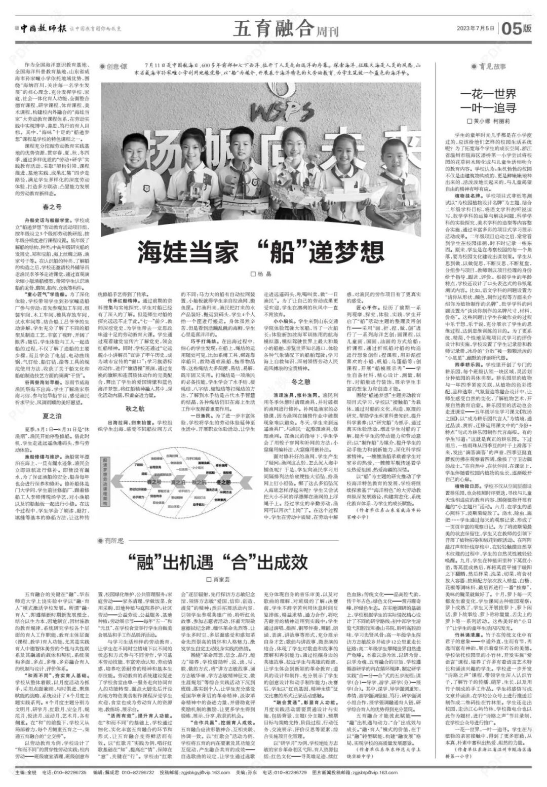 丰富的研学课程正在不断拓展着学校教育的边界。校长王艳军一直希望学校教育逐步形成从课堂到生活课堂、从学校到校外研究的大教育圈,让学生“学在天地间,研在日常中”,以万物为师,以世界为教材,在真实的情境中体验、合作、探究,将德智体美劳五育有机融合。“当原本一些只能通过文字感知的自然、人文变得可触摸、可感知时,我们立德树人的根本任务便更容易落地。”王艳军说。