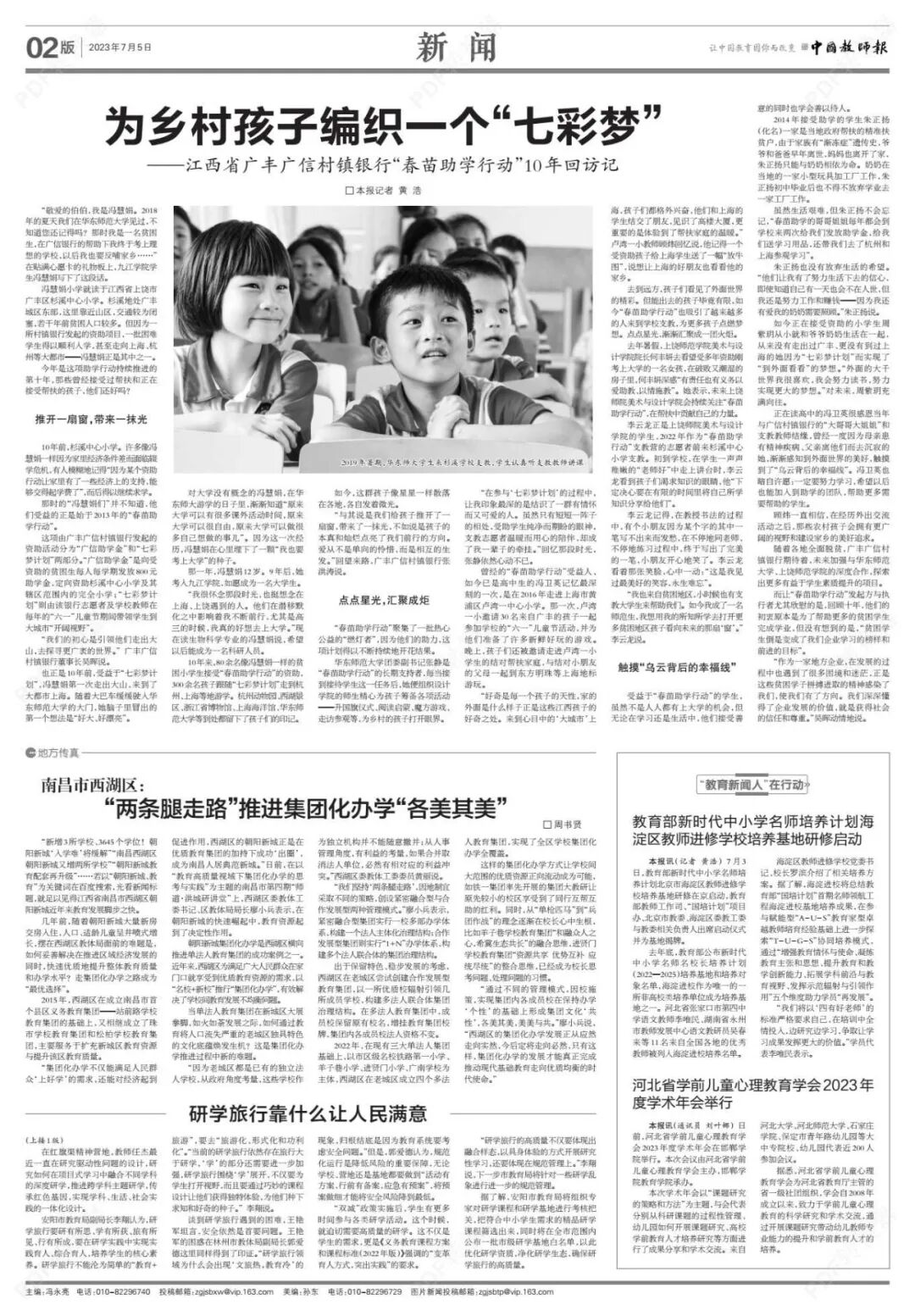 “学校的研学工作是不断优化迭代的。”近年来,学校的研学逐步从“浅表”研学走向“深度”研学,更加注重“研”与“学”融合互通,并拓展研学成果展示空间。王艳军说,过去研学旅行多是以春游、秋游和远足为主要形态,在“双减”背景下再来审视研学旅行,不能是简单的游与玩,而是一种综合实践活动课程,它应具有计划性和设计感,要有明确的目标和任务。“如何设计出贴近孩子需求的研学课程,让学生带着研究意识去研学,尤其是要以项目式学习方式重构研学课程。在这方面我们还有很大的探索空间”。