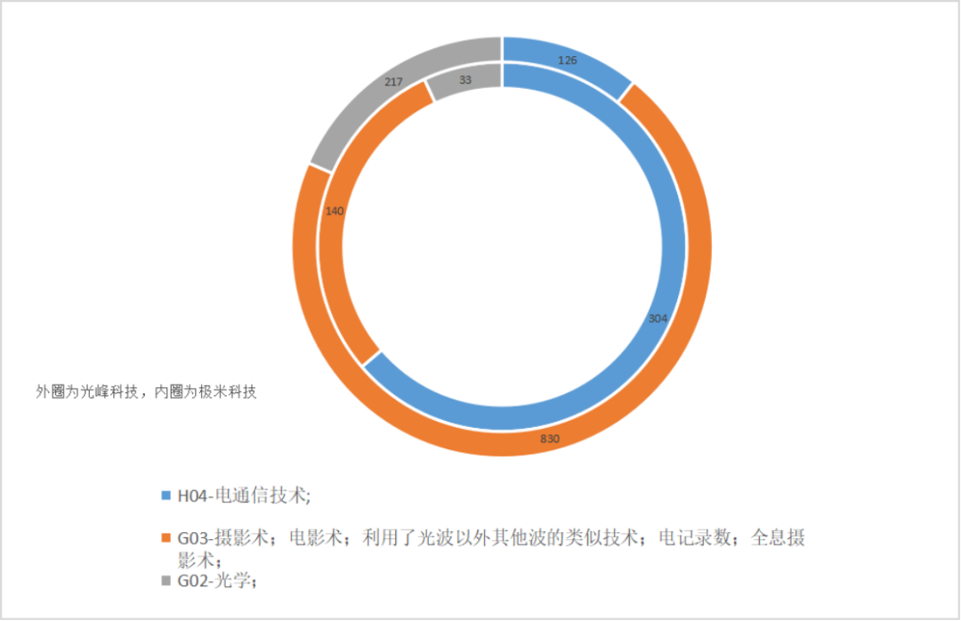 图:极米科技和光峰科技专利分类统计(部分)