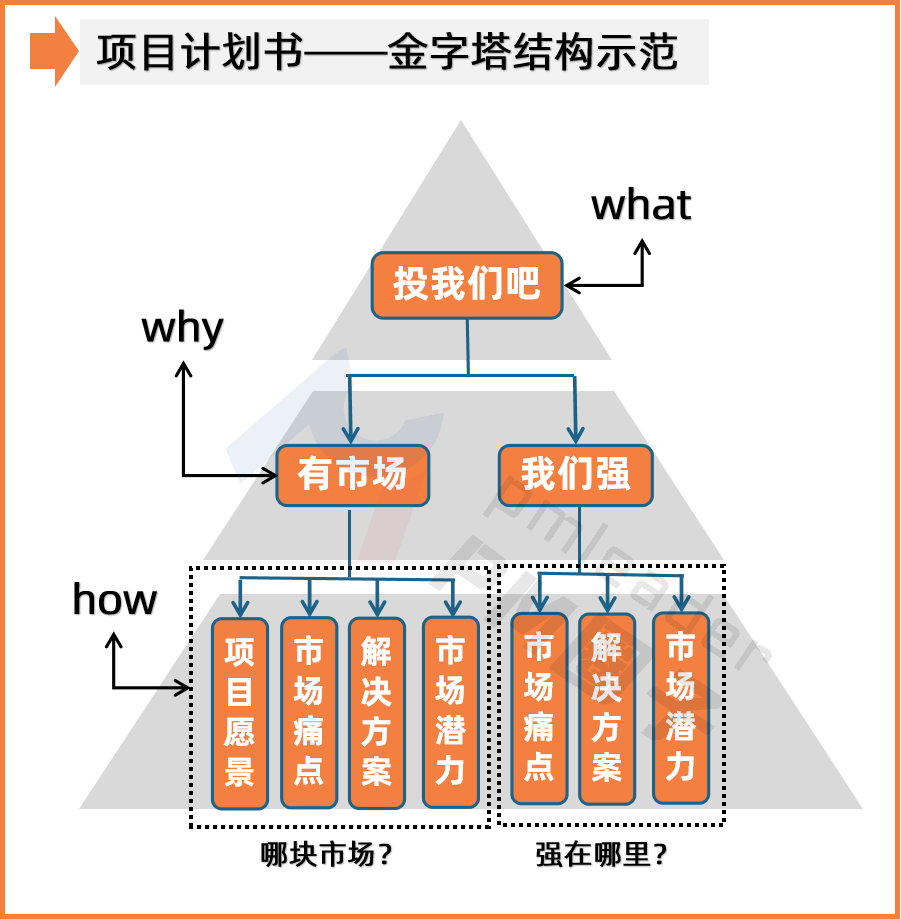 金字塔的基本结构是:中心思想明确、先重要后次要。