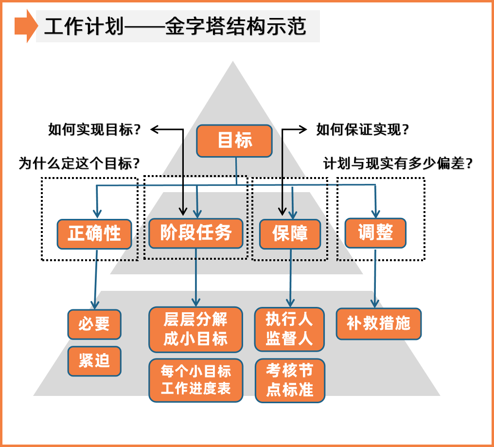 使用金字塔原理,能够使你在遇到事情的时候,形成一定的思考逻辑以及一些特定的流程结构,它可以检查你的思想的有效性、一致性和完整性,还能够帮你发现某些遗漏的细节,甚至拓展一些新的创意。