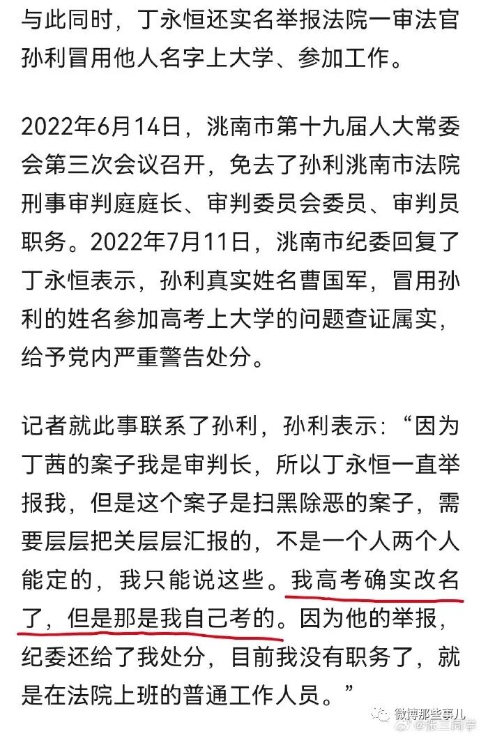 然而,当地镇政府的回应,又将即将反转的事情拉了回来没想到,昨天当地又有其他人爆出审理此事的法官竟然是冒名顶替上高考的他本人是辽宁白城人,听孙利哥哥说内蒙高考分数低,就用了孙利名字去内蒙参加了高考。![]()