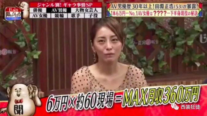 ——如果要问起青春懵懂的少年们“最向往的职业是什么”这个问题我就看过一位男孩“对他心目中的男优生活”表达了无限向往因为他觉得男优每天都能见到那么多“年轻漂亮且听话”的女演员还能对他们拥有“绝对”的掌控权,想干什么,就干什么“是不是要比在中国当大老板、亿万富翁、甚至是做神仙都要幸福啊?”那大概就是“too young too simple”了因为年轻的他,显然只看到了男优们在镜头前的“享受”前段时间,日本有一档综艺,请了不少av男优、女优来到现场从业30年,拍过10000多部片子,和9000多个女演员合作过的正浩君30年前,22岁的年轻小伙田渊正浩入行,成为了一名av男优一部片子的片酬,大概是3万日元(约1800人民币)他拍一部片子,已经能拿到6万日元(约3300元人民币)的酬劳了他觉得这个问题的根本原因——是由于在av业界中,男优普遍不受重视造成的他回忆自己最忙的那段时间,一天就要跑6个片场,从早上工作到晚上一个月下来跑了整整60个片场,这才终于赚到了360万日元因为大部分普通男优做这份工作,就相当于“青春饭”而已他们可能会透支了健康,落下严重腰伤、性病、甚至因为服用壮阳药患上阳痿...哪怕需要拍摄一些合体的场景,他们也只能通过借位的手法来完成男优就算没有弹药了,他也要硬挺着,直到拍出合格的影片为止他说自己“头晕目眩、双腿发软,连怎么回的家都不知道了”洗漱之后,用维他命粉等材料,自己调制一份营养液,作为每日肌肉的动力素然后吃完饭以后,他依然要补充大量的药剂,以维持身体机能“这些瓶瓶罐罐是什么?”