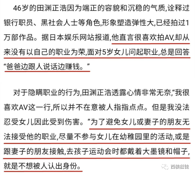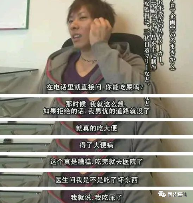 到达片场后,他先是仔细的看台本,了解剧情、体位、动作顺序等信息为了最好的演出效果,他还在台本上做了密密麻麻的笔记14年来,他不能喝酒,不能熬夜,每天晚上11点就要准时睡觉事实上,也正是靠着极强的自律,他才能保持这么长的职业生涯曾经在导演的要求下,他体验过一段堪称传奇的“绿汁事件”可能当年吃屎的经历的确对他幼小的心灵,造成了难以磨灭的打击以至于当清水健成名多年后,他还在街边开了一家自己的“翔味咖喱店”其实对av男优们来说,更难忍受的,是别人对他们家人的指指点点可是每次被5岁女儿问起自己的职业时,他都只能无奈的撒谎说他每次到女儿的幼儿园时,也不得不一直戴着帽子和大墨镜甚至,因此父亲的职业而倍感耻辱,因此尝试自杀的孩子...保持极度自律的生活、忍受常人难以想象的羞耻和“重口味play”他们最终得到的也仅仅只是女优们的几分之一、甚至是百分之一在“生存条件极其恶劣”,导致男优数量堪比孟加拉虎的av圈子里在无数的寂寞的夜晚,少男少女们的青春躁动,又有谁能来抚慰呢?欢迎关注灰产圈社群服务号