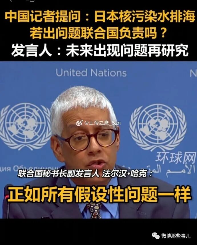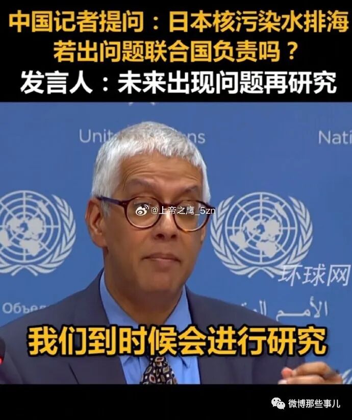 中国记者:日本核污水排海,如果出了问题,联合国负责吗?