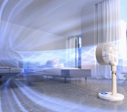 想象一下,在循环扇的带动下,室内空气自然流动,变成一个通透、舒适的空间,再加上清凉的小风从四面八方将自己团团包围,风感就像夏天雨后的清新、凉爽,久吹不头疼!