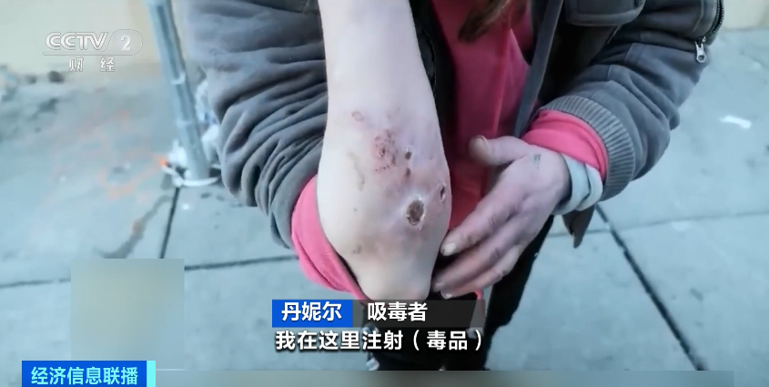 吸毒者 丹妮尔:我在这里注射毒品,它好像把我胳膊的皮肤穿了个洞。