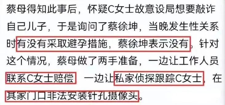 整个声明和公关都有种老母猪穿胸罩的感觉。而且路人们最关心的,应该是蔡徐坤妈妈到底有没有偷偷装摄像头和请人跟踪对方吧。
