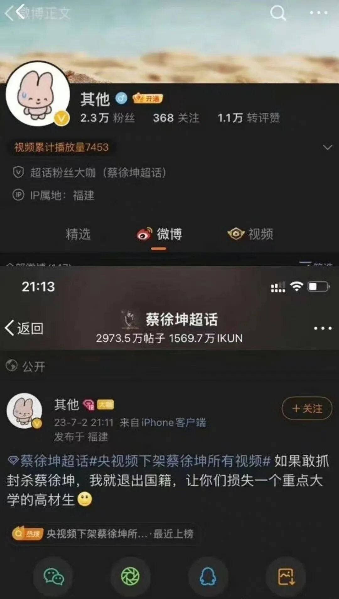 这两天热搜上也挂着,央视频下架蔡徐坤所有视频。
