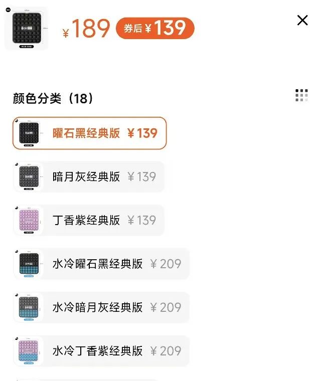 充气版,旗舰店到手价139;水冷版,旗舰店到手价209。