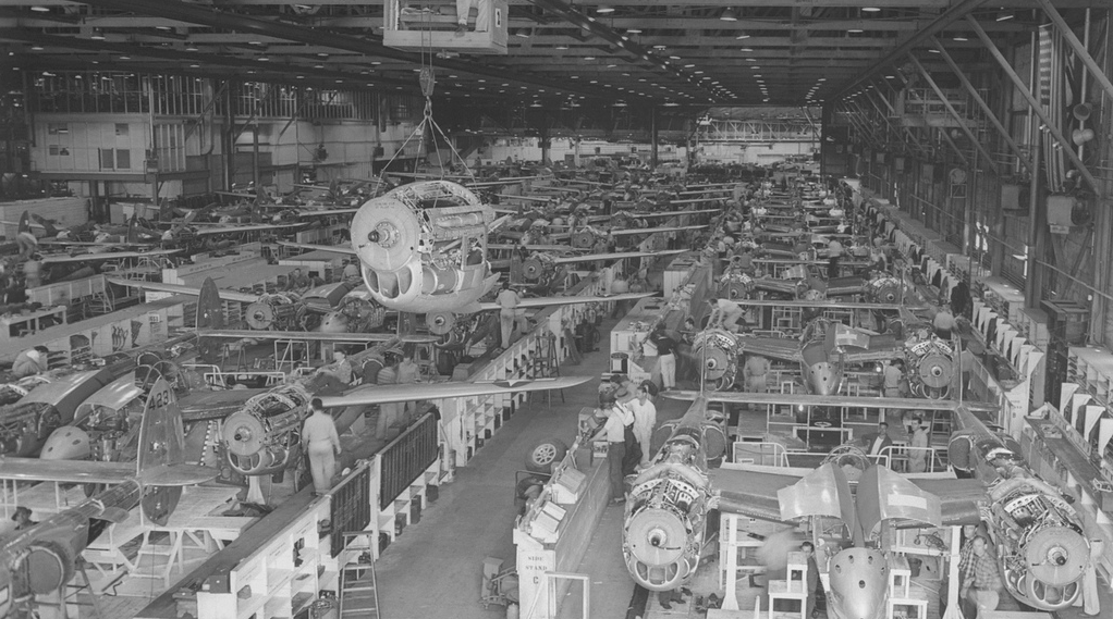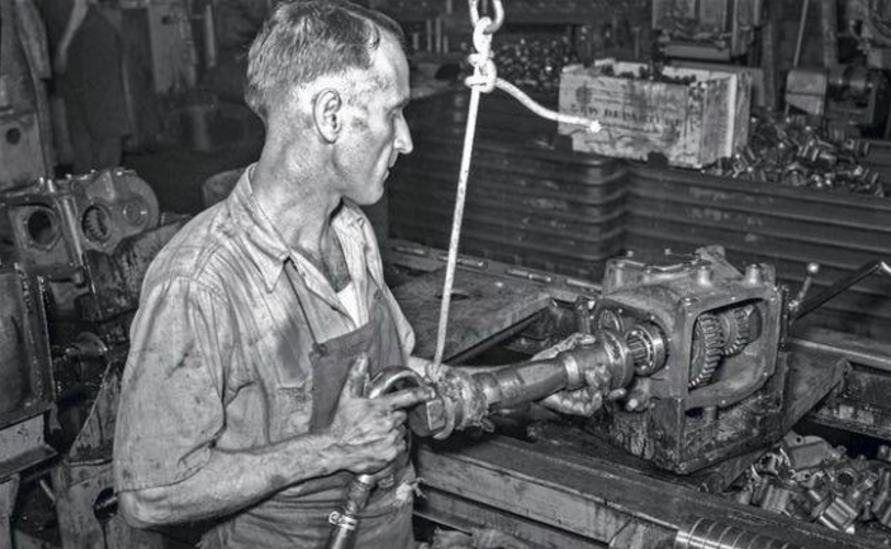 原因很简单:资本向来是逐利的,搞大炮、炮弹,赚的那点微薄的利润,怎么比得上搞金融,一夜之间就出入几百万上千万的,还要搞什么制造业?1940年代的美国工人,当时美国正在工业鼎盛期。资料图。