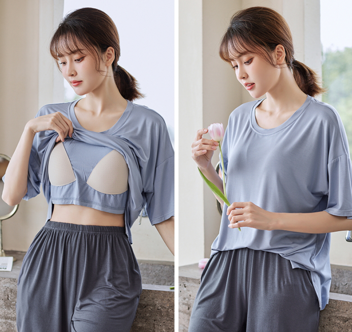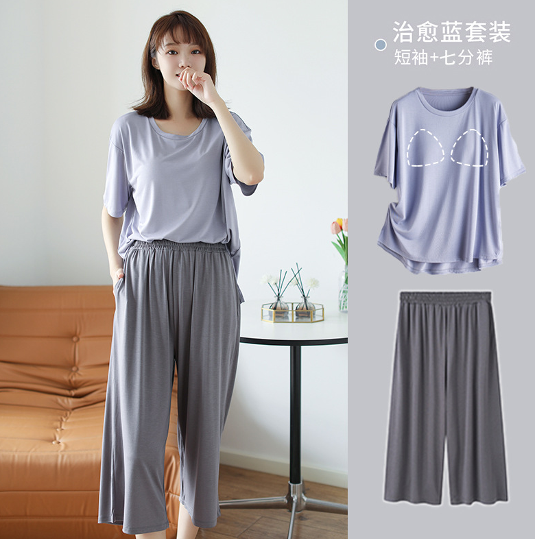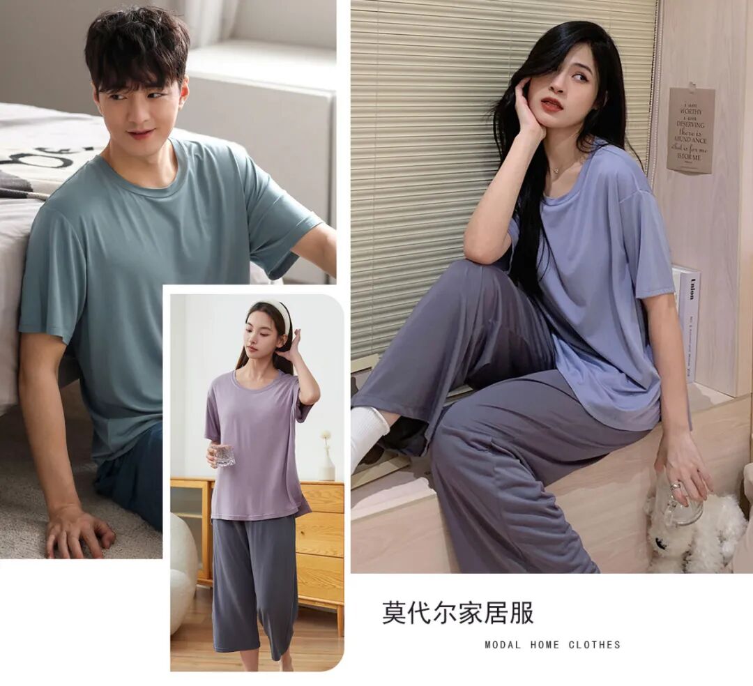 女款是短袖上衣+7分裤,小编要特地强调下女款是自带胸垫的设计,真的很贴心!这样既避免了内衣+外衣的闷热与束缚,又巧妙解决了不穿内衣露点的尴尬,哪怕是家里有老人小孩的都能放心大胆的穿!当然,不管是男款还是女款,对身材的包容性都非常好,哪怕是大肚腩或是梨形身材穿上它,都瞬间遮挡。这么好的品质都离不开它的源头工厂,除了销售Cotton-moon棉月品牌,它还是红*,优*库,海澜*家等大品牌指定的合作工厂像这款家居服之前的秋冬长袖款就已经卖爆了,好评回购无数,很多朋友都是两三件一起下单,所以库存很快就没了。今年为了让大家都买到,我们的买手从初春就在盯着工厂要库存,备足了春秋款后又立马盯着夏款,总之很多要买家居服的小伙伴都在等它。网上像这种莫代尔面料的家居服,售卖的价格也不便宜,基本都是200+