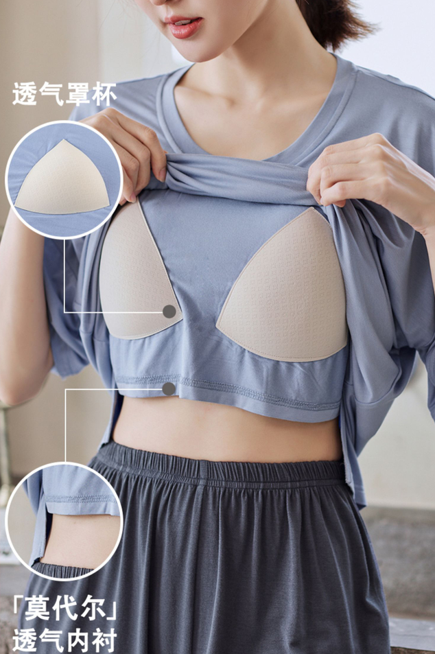 宽松圆领适合任何脸型,领口大小和高度适中,既不会过低担心走光,也不因过高感到闷热。还有贴心口袋设计,放手机装东西,随手一插口袋,给尴尬星人满满的安全感~而且不管是袖口,裤腿还是衣摆处均采用包边设计,不易卷边不易脱线,穿上身不会有异物感、摩擦感,非常舒适。其中蕞吸引小编的是女款的是「自带4D无感胸垫」,对女性来说真的很友好了就算是跟家里人一起住或是跟别人合租,不穿内衣也不用担心凸点的尴尬。也随时可以「在家会客」,不用再专门去换一套衣服!