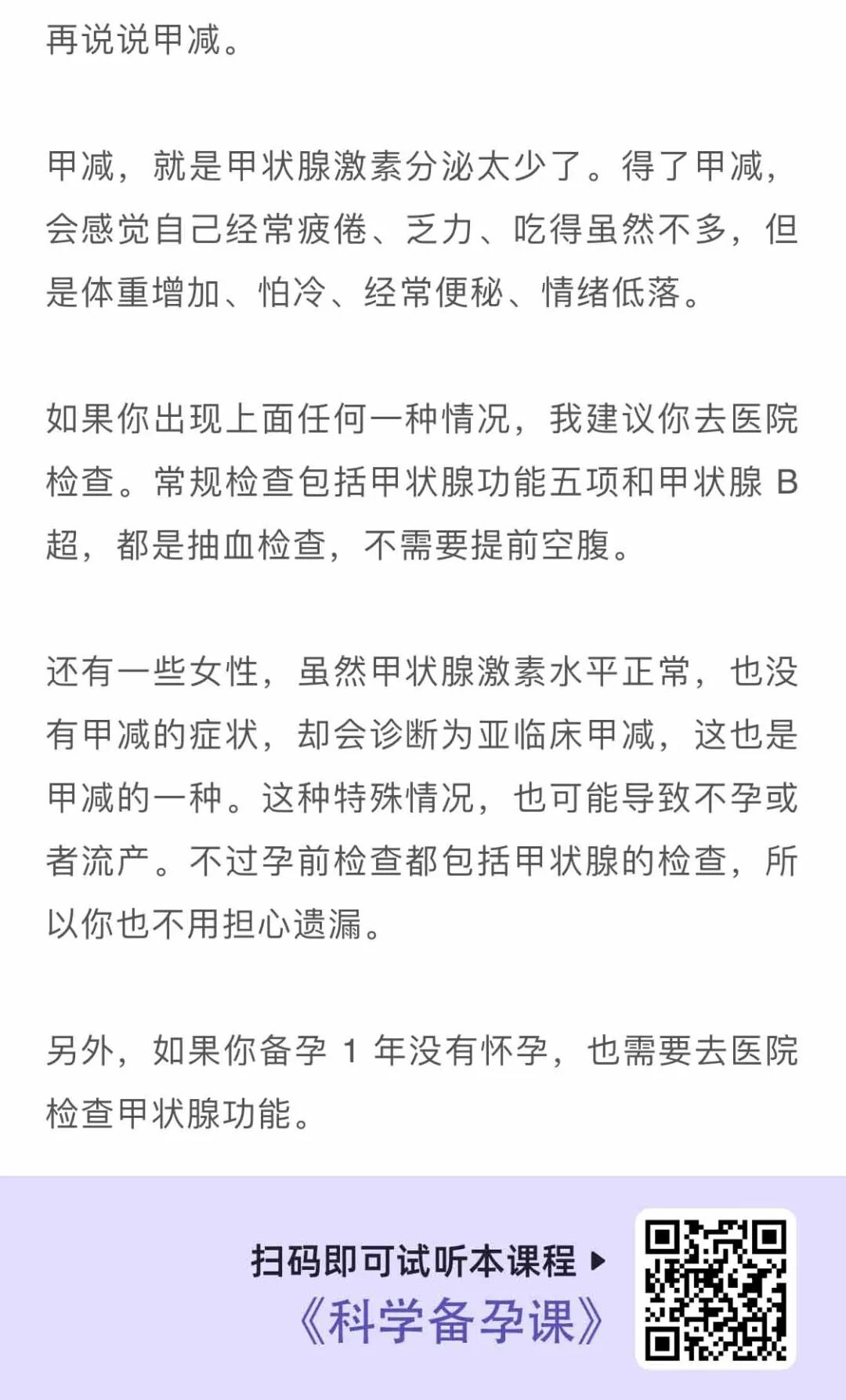 我的患者中就有自己备孕前不知情,在孕检中,查出有甲减问题,我建议她先调整甲减再怀孕,防止甲减影响宝宝生长发育。