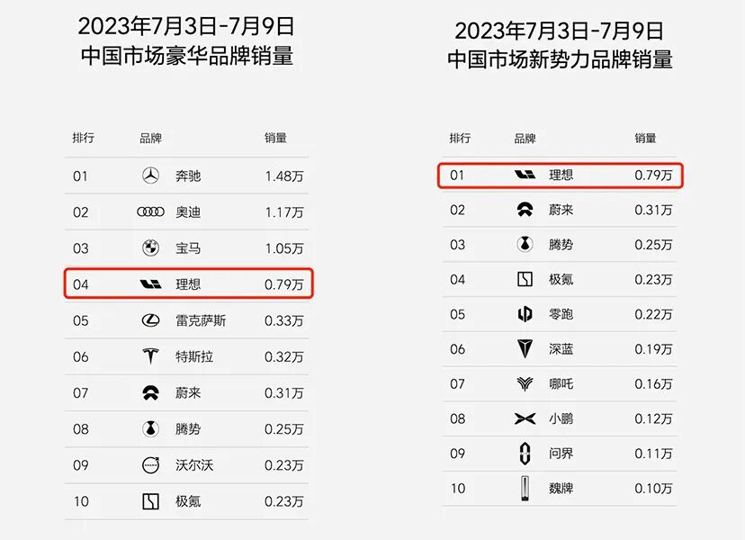 本周,理想汽车跻身中国市场豪华品牌销量前四,是榜单中排名最高的中国品牌。