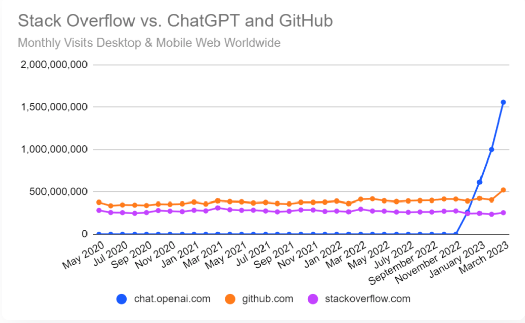 与此同时,一些 Web 网站也正在被动地受到 ChatGPT 的冲击,譬如,知名程序员社区 Stack Overflow 便是其一。