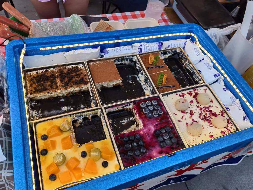 然而,这份或许曾经很优秀的甜品,在高温的室外环境下变得糟糕透顶。奶油与奶酪升温,变为温热的油脂,入口的瞬间油腻遮蔽了所有味道。