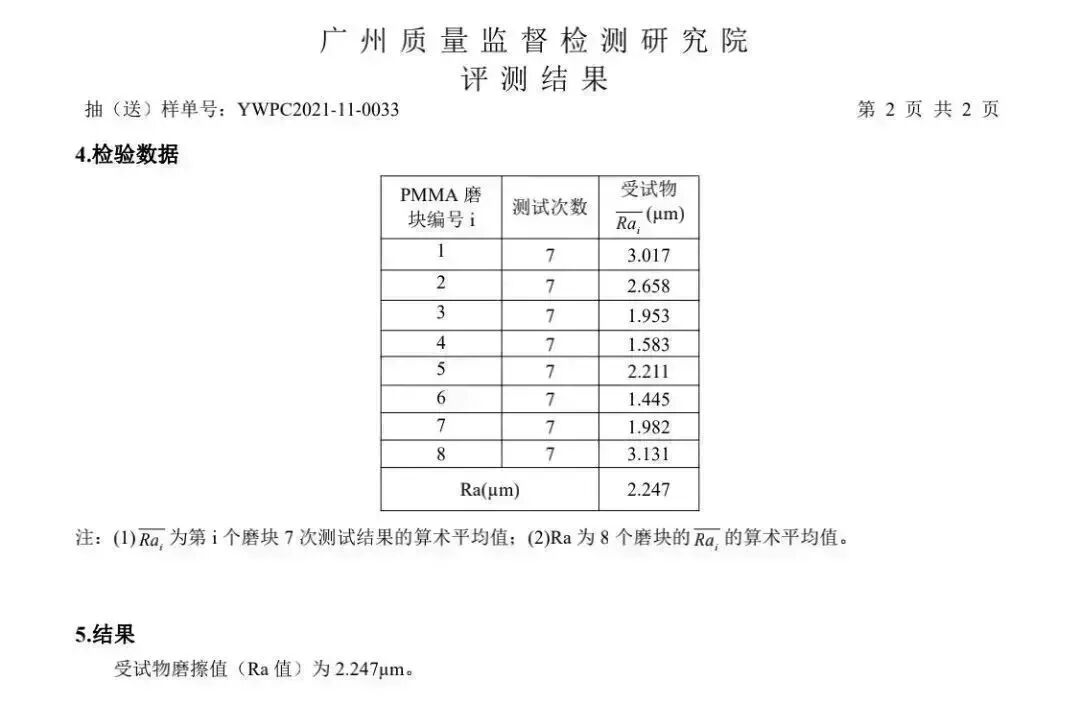 ufr 牙膏经过了国内的 RA 专业检测,显示摩擦值在 2.2~2.3 之间。