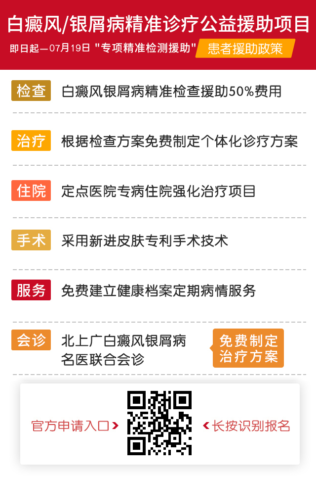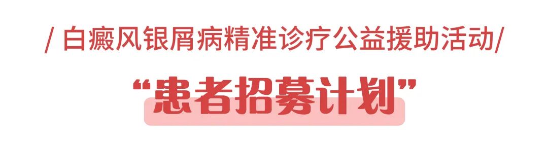 关爱白癜风/银屑病患者,切实帮助患者规范诊疗、减轻经济负担。本次公益援助仅针对白癜风(白斑)/银屑病(牛皮癣)患者且不限年龄段。