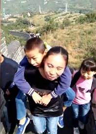 十一长假,爬长城的队伍里有一位背着儿子的母亲,9岁的儿子患有先天性肌无力症,花了很多钱也还没治好。