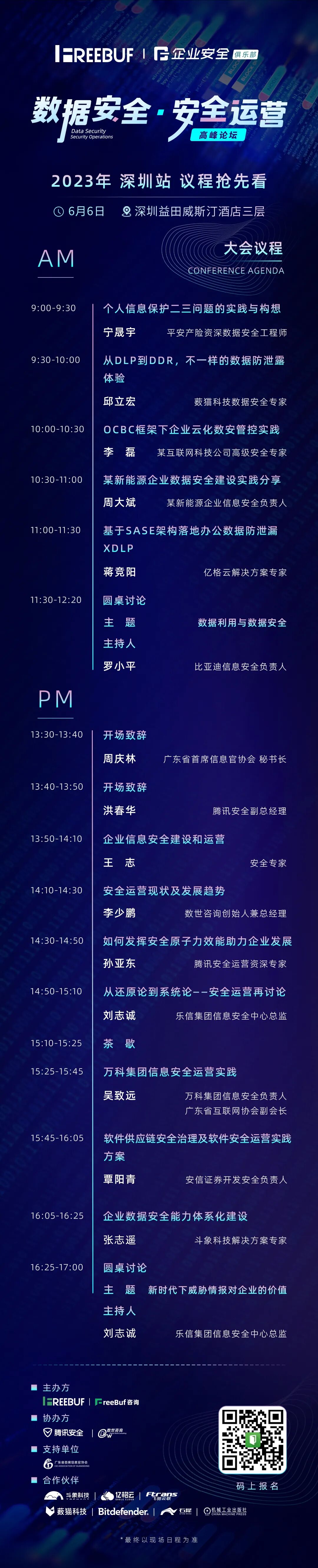 本次大会以「数据安全·安全运营」为主题,多位行业专家、知名企业安全负责人担任演讲嘉宾,十多个议题多角度地解析数据安全,探寻安全运营之道。两场重磅主题圆桌将带你与嘉宾们一起,观点交锋,思维碰撞。