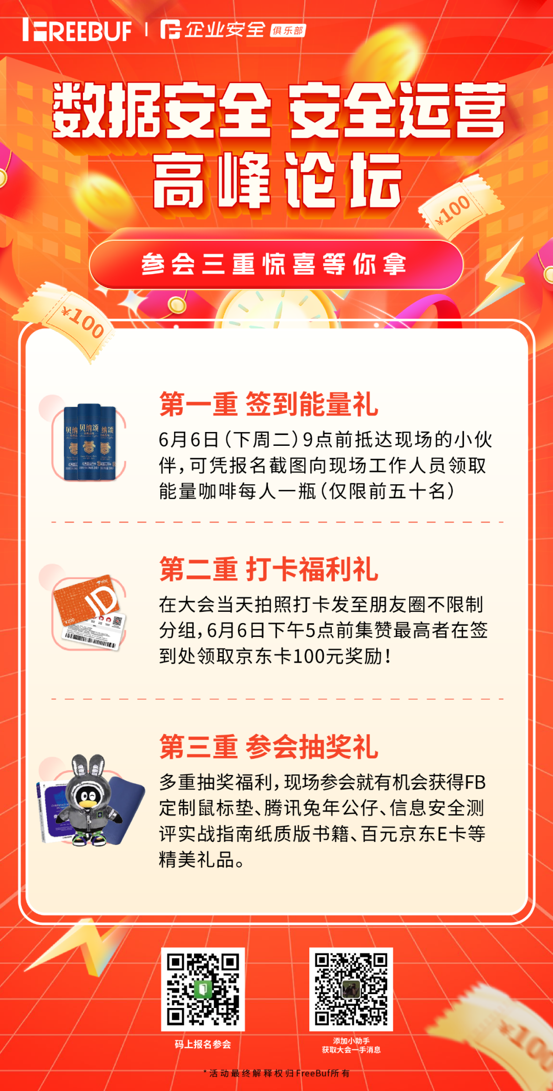 对于不能到场参加的观众,本次大会将通过FreeBuf视频号全程进行直播,扫描下方二维码,即使相隔千里,也能收获大会中的满满干货。