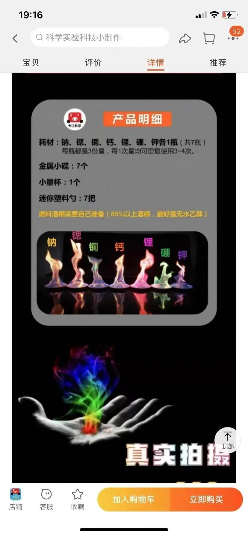 △一款用于展示“焰色反应”的商品,因其高温可能潜藏火灾风险。(网络截图)
