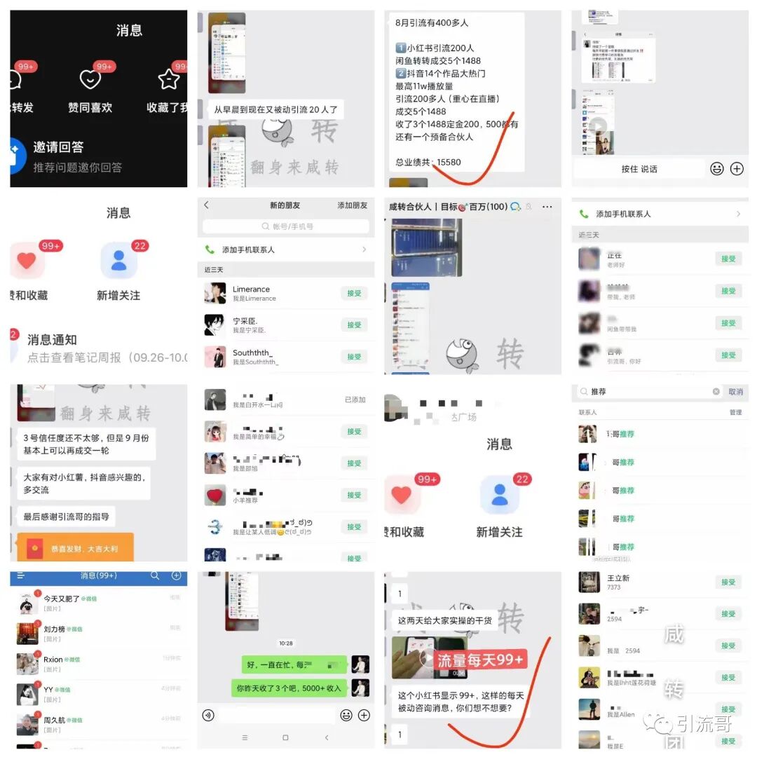 比如:浩姐、裂变哥、引流君、引流增长哥、超哥、黑马哥、李老板、引司令、初心哥,苗家三少等等,