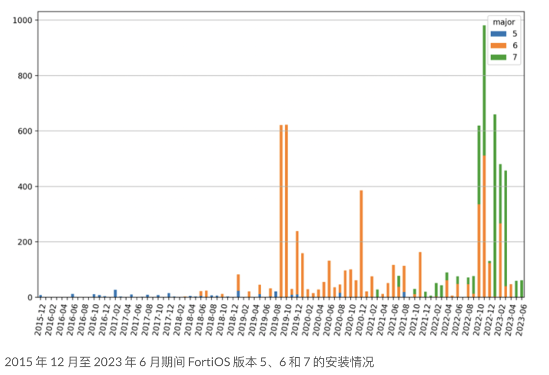 对 Last-Modified 标头值的分析显示,2018 年及之前存在很多 异常 值,研究人员注意到互联网上有少数设备运行 8 年前的 FortiOS。这些设备存在多个严重漏洞,该公司多年来已解决这些漏洞,并且具有公开的概念验证漏洞利用代码。