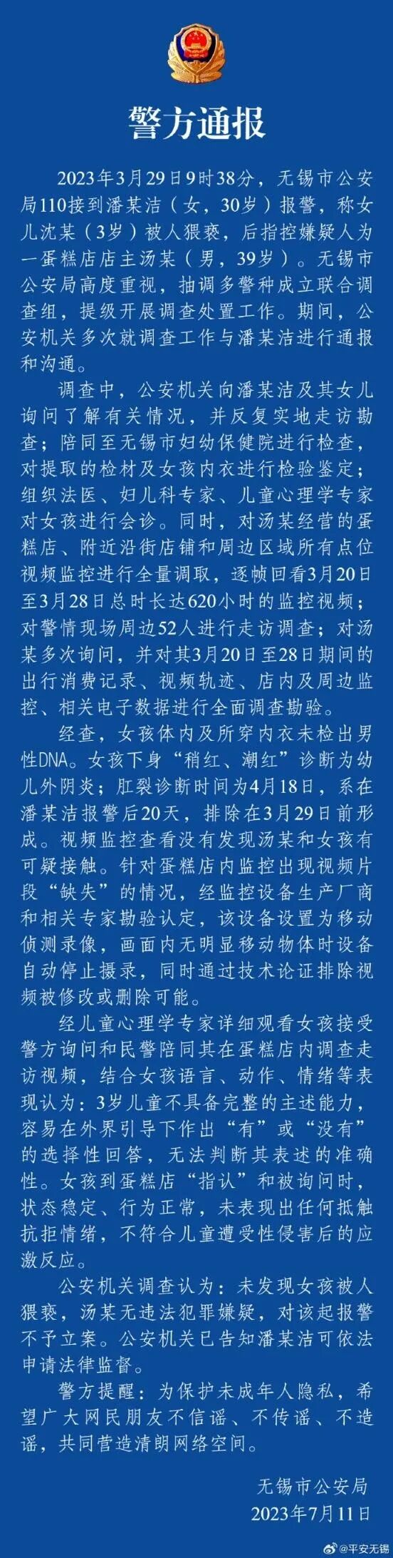 7月11日,无锡警方的通报出来了。说实话,我从来没见过这么长而详细的通报。详尽而又全面的回应了公众质疑的所有的点: