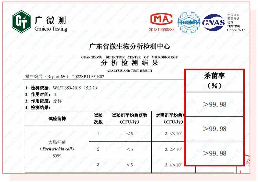 瞅,小橙瓶对大肠杆菌的杀灭率高达99.98%以上!