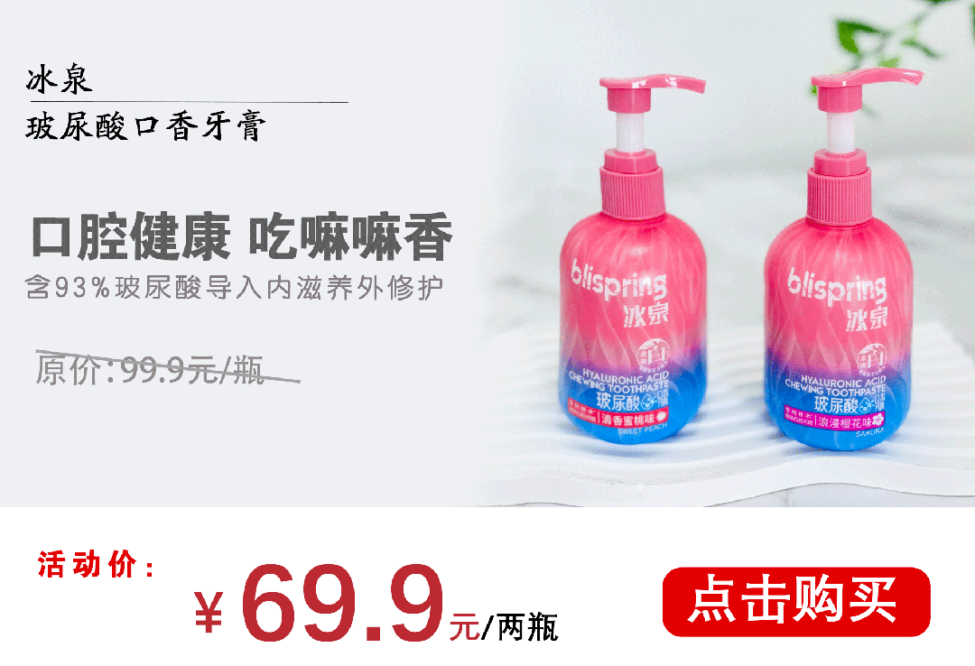 关键是冰泉这牙膏,用多了,还能促进口腔健康咧,让你越刷牙口越好!